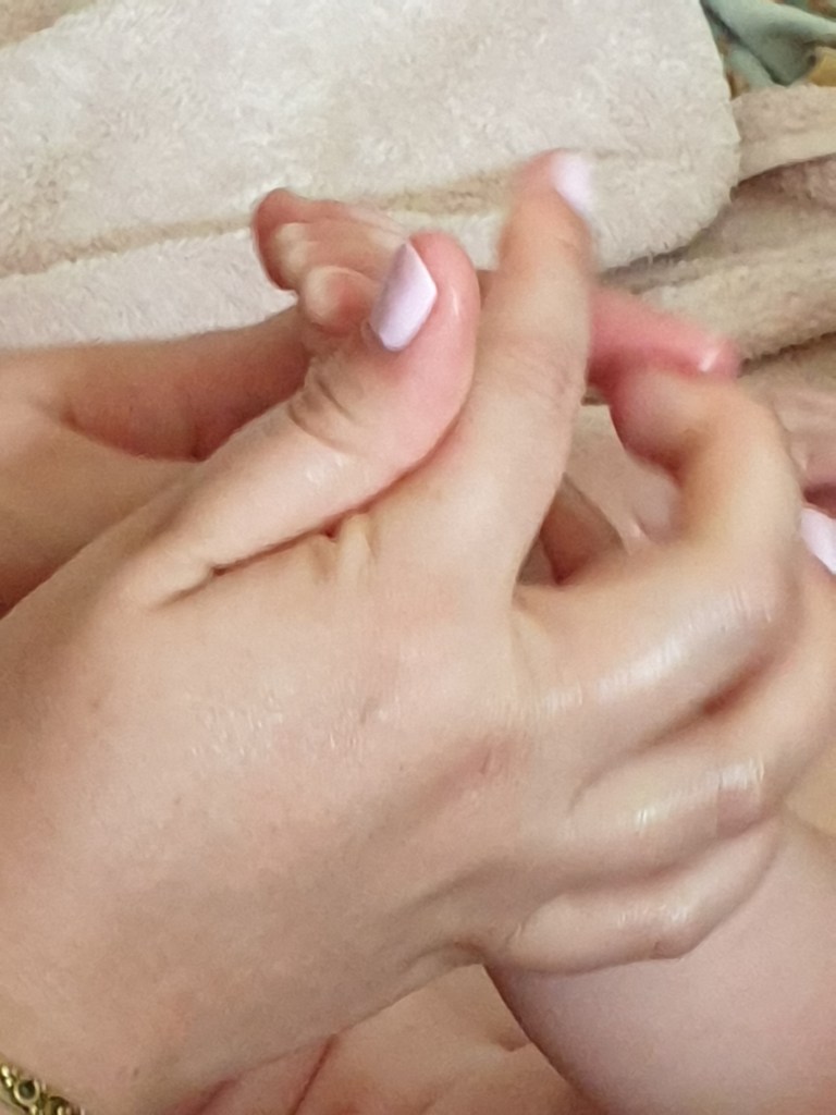 Hannah- “Baby massage helped setting up a routine for Fae. When I massaged at night after bath it helped both me and Fae to settle”.
